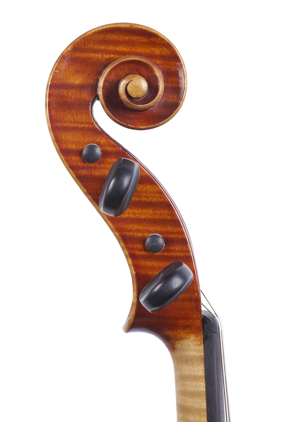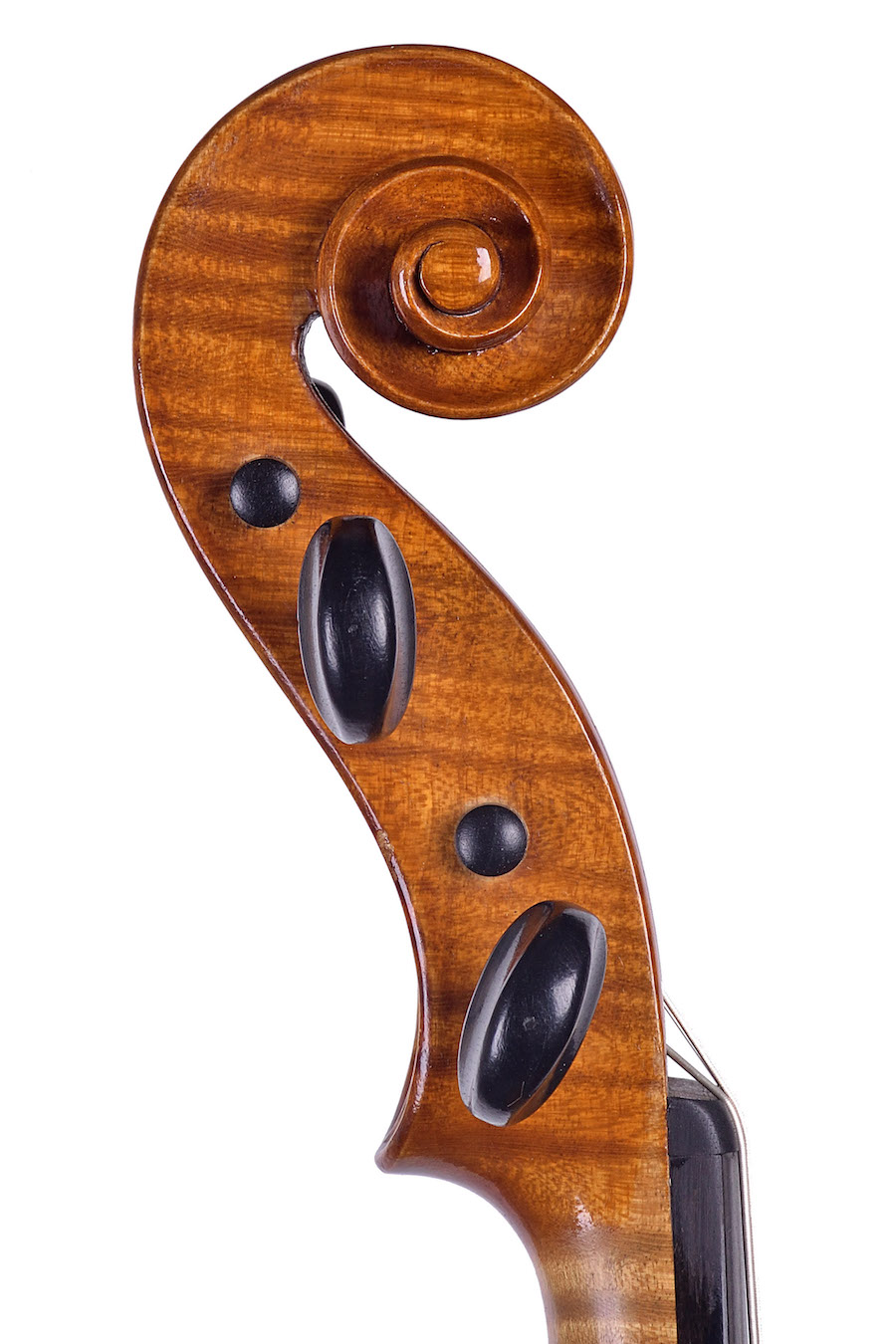 Il modello tondeggiante trova ispirazione negli Amati e in Stradivari e i dettagli della lavorazione sono accuratamente arrotondati per evitare ogni spigolosità: le punte piccole ed eleganti, il filetto sottile e ben eseguito e la sguscia dei piani stretta. La cassetta dei piroli è piuttosto rettilinea; la voluta e l'occhio piccoli e arrotondati. Le Effe hanno spesso un posizionamento inclinato e delle tacche molto acute.