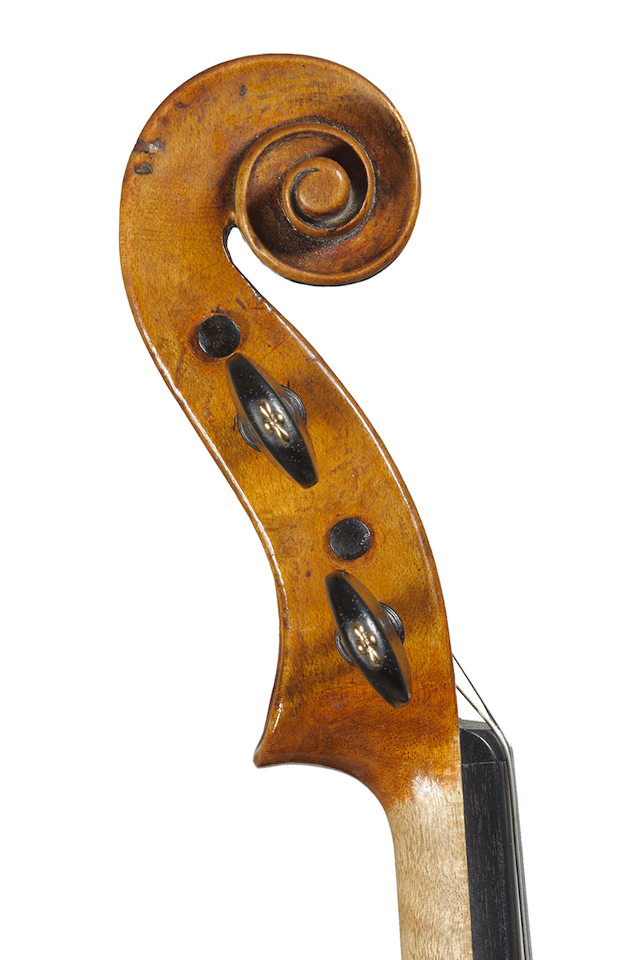 Utilizzò spesso acero locale e abete con una vena marcata, seguendo un modello personale con le spalle piuttosto spioventi e due rigonfiamenti nella zona degli zocchetti superiore e inferiore. Caratteristiche anche le Effe, con le palette molto larghe e orizzontali e le tacche appuntite. Per le teste si riforniva occasionalmente da produttori esteri, ma realizzò anche qualche riccio personale.