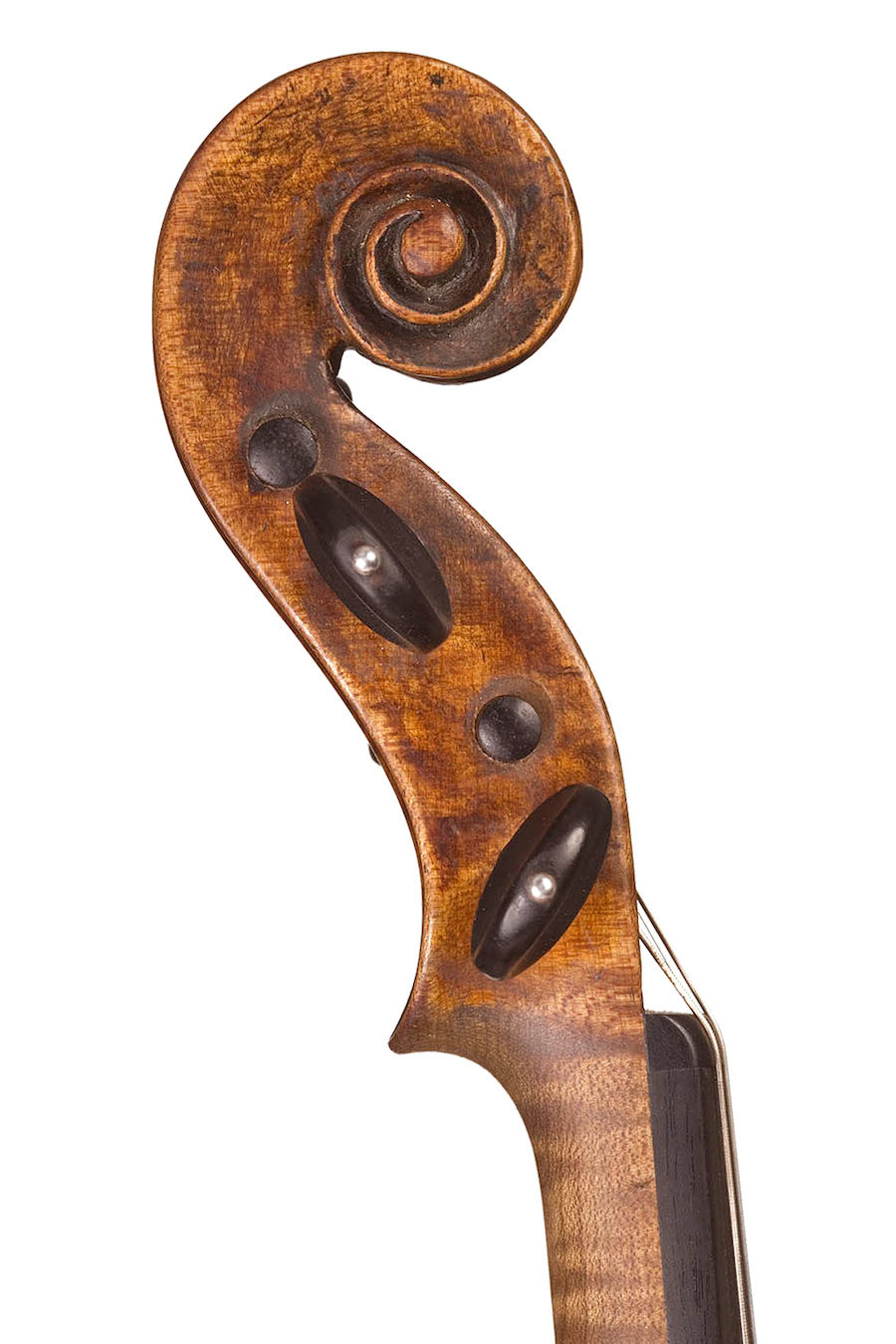 Come in questi ultimi, nel suo stile si mescolano elementi emiliani e veneziani, anche se la qualità del suo lavoro si dimostra piuttosto discontinua. Vari furono anche i modelli di cui si serviva, anche se rimangono riconoscibili le punte aggettanti verso l'esterno. Il piazzamento dei fori armonici appare sovente spostato verso il basso della tavola armonica e fortemente ravvicinato nel senso della larghezza, specialmente nel modesto spazio fra gli occhi superiori; le aste sono strette e inclinate. Nei suoi ricci, il sottogola tende ad essere basso e poco scavato.