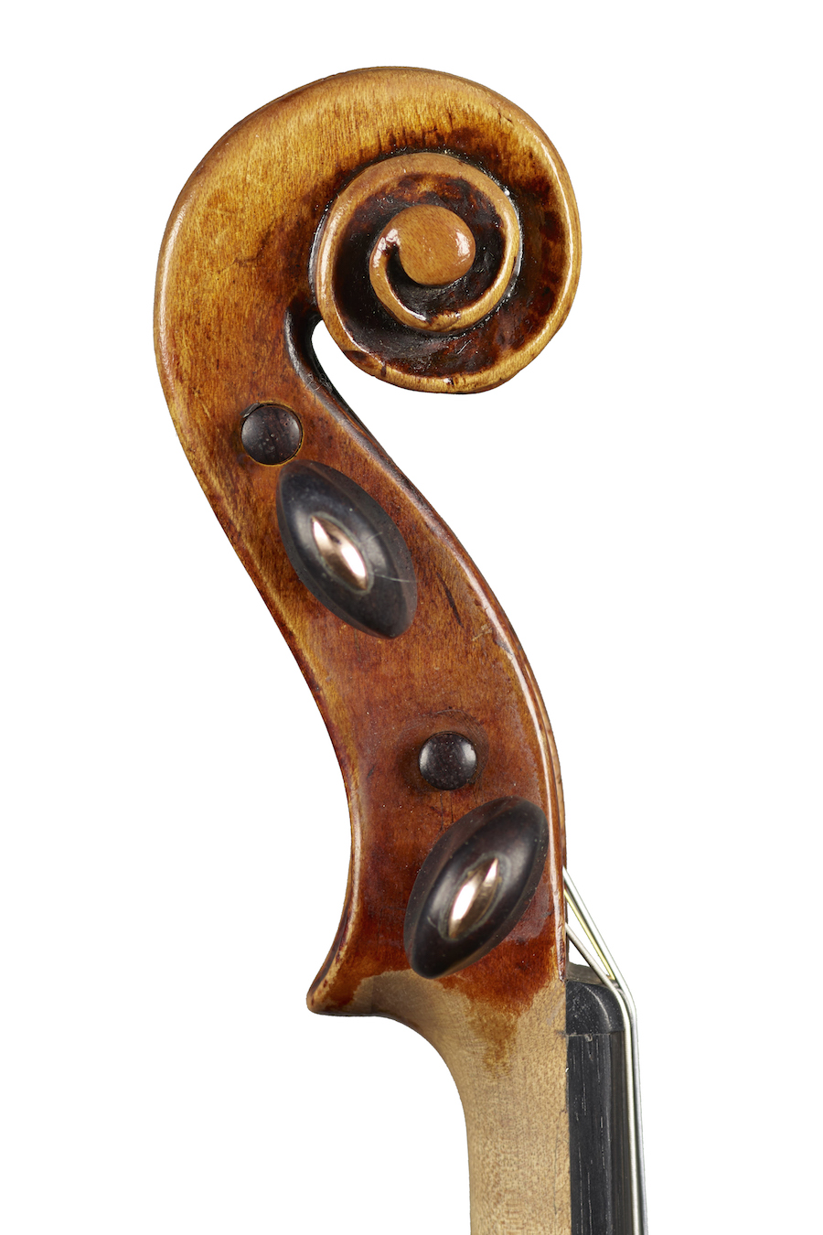 The models of Storioni are freely inspired by the works of Guarneri del Gesù; they also echo the shape of their F-holes, that have a tilted positioning. The head, on the other hand, is personal, with a straight peg-box and a narrow and shallow throat, especially in his first instruments; the volute ends at the top of the eye, which is strongly rounded. The materials are often poor and of local origin, but his work is highly appreciated for its acoustic qualities.